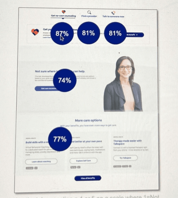 I was brought in to redesign liveandworkwell.com in 2023 with the OBH XD team. One of my main responsibilities was redesigning the "Get Care" navigation for a behavioral health platform serving millions. I applied the Jobs-to-be-Done framework and the tabs component, achieving an over 40% improvement in task completion rate through A/B testing. Launched in January 2024, the redesign reduced support tickets and improved task completion for users seeking mental health support.