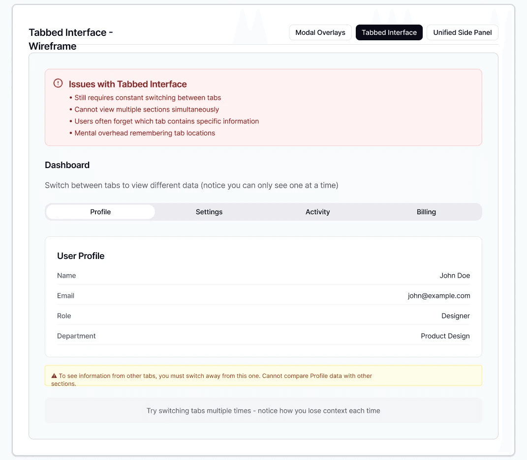 ❌ Option B: Tabbed Interface